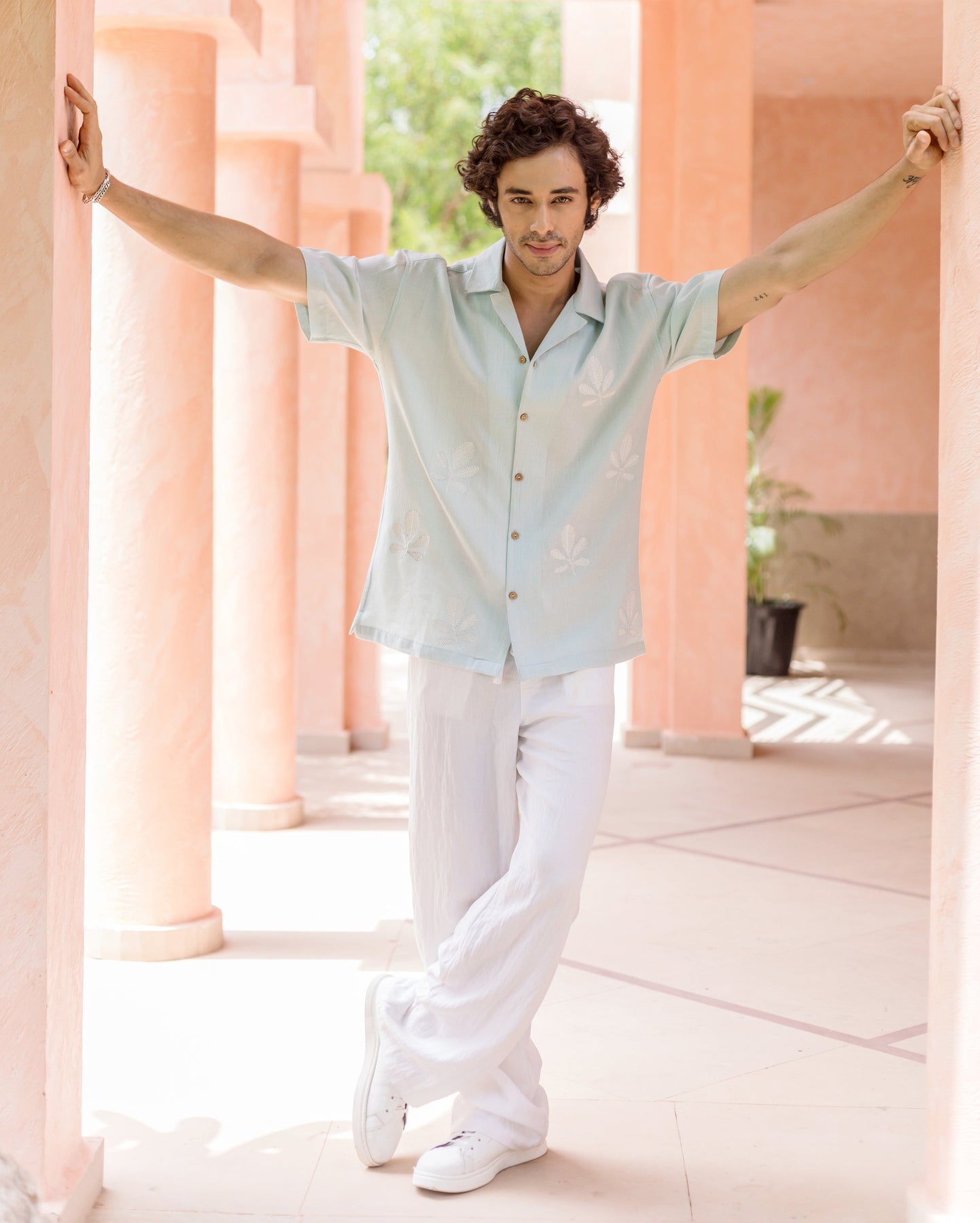 Niko Pastel Blue Embroidered Slub Shirt